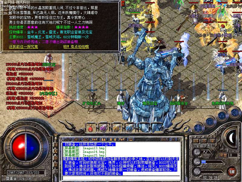 新人先到闭关去练到100级,然后可以去初级打宝地图打到炎龙装备。注意:多的装备可以到装备回收处换取元宝。然后可以去专爆天龙,秦始皇陵等地打高级装备。要练内功可以到天关或是雪域,注意一定要入个会哦!!!行会开启5倍经验和内功经验,,练内功才叫爽啦!等到内功练上来了,装备也打得差不多了,您可以去本服的新三大地图或火龙殿打荣耀和佛法无边装备。如果你觉得自己够强了,可以去本服终级地图虎威之地试试。那里可是爆终级装备的地方哦。