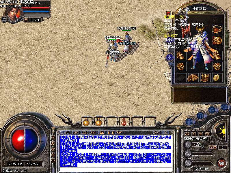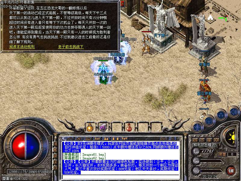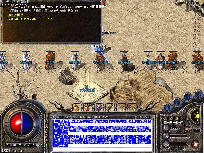【公告】环都数据全力打造绿色私服,坚决做到:公平,公正,公开,长久稳定开,本F奖励多多,装备好打。每天开放一个新区为保证人气,第三天首次攻沙奖励元宝:88W元宝;老区天天拿沙,奖励元宝:50W元宝。