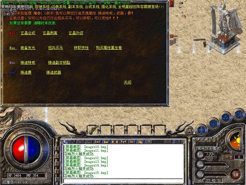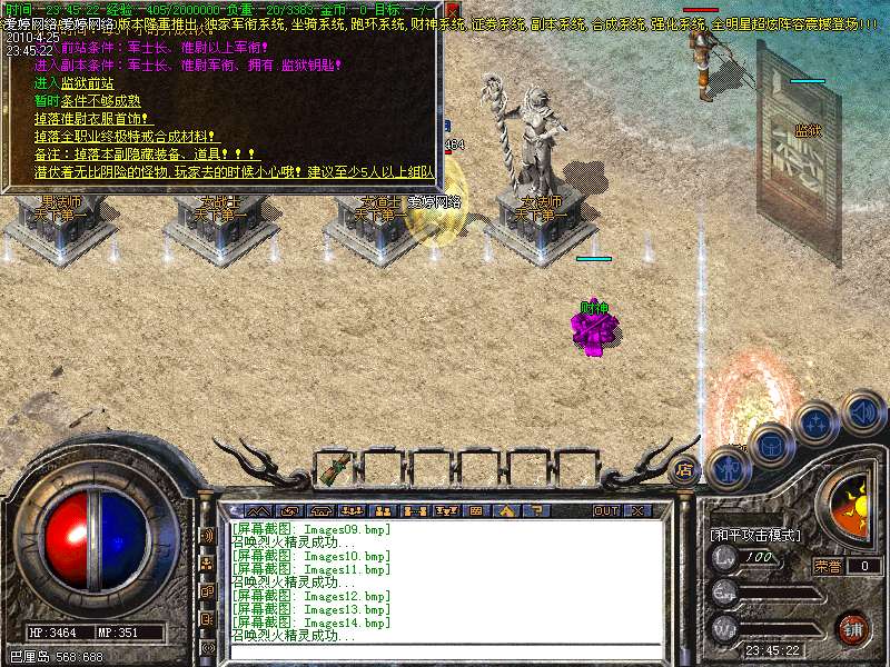 战场-[战歌峡谷]全面开启,战场内杀死1个玩家获得1点声望,累积声望可以换[雷霆之怒,逐风],[冰龙]及大量特殊物品!战场类杀人不掉装备,不加PK值!