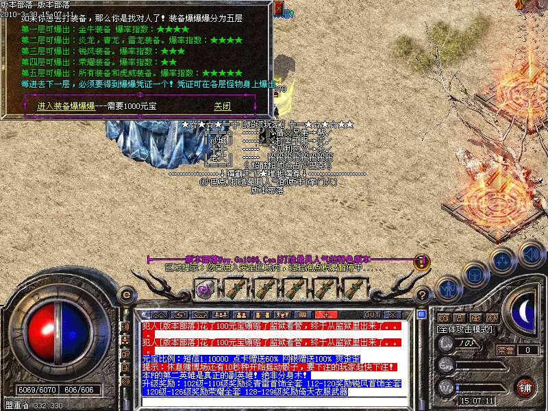 装备爆爆(分六层): 集合所有地图,一层金牛,二层青雷炎,三层锐风,四层荣耀,五层虎威,六层包括所有BOOS!