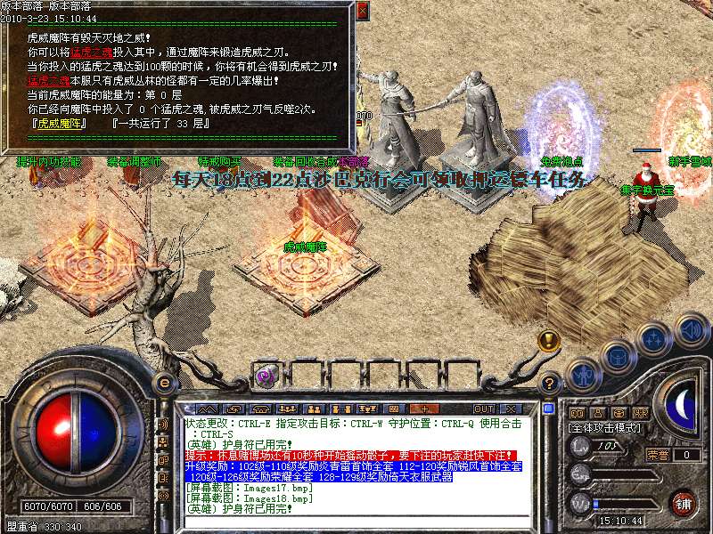 里面可以任意PK,10分钟后不可以再进入,自进入一刻起,倒计时开启,坚持15分钟的玩家,系统自动将其传送到下一张地图,以此类推.最后
