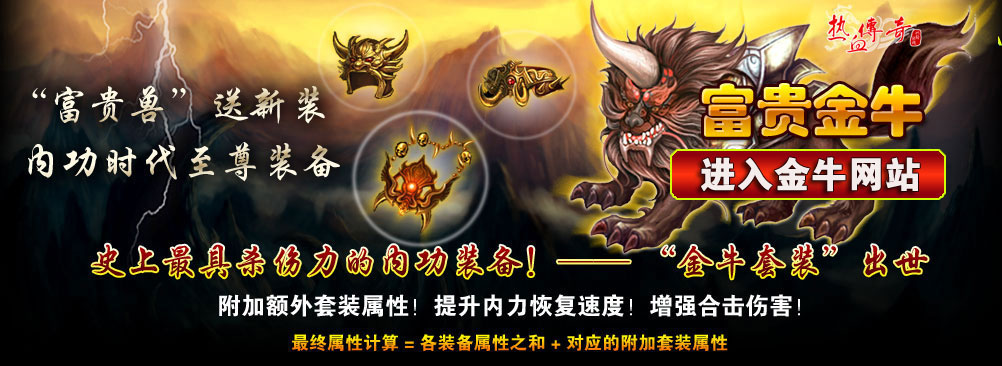 服务器已经更新盛大最新的王者套装,属性高于雷炎套装一个层次,要想获得王者套装必须要勇闯“王者之地”还能获得荣誉值!