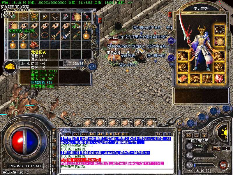 【神的恩赐系统】玩家可以在元宝商店使用获得<神的恩赐>,短暂的时间内激发自身潜能力量.增加人物死亡提示地图.坐标.方便丢了装备的快速找到该地点.