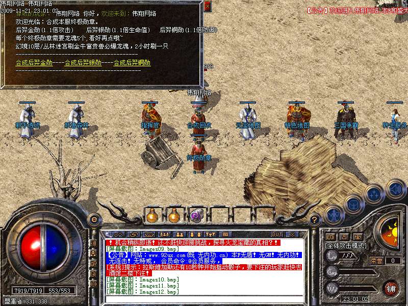 4.新区开区第二天攻沙,奖励20W元宝+倚天武器或衣服任选一件!老区天天攻沙,奖励20W元宝