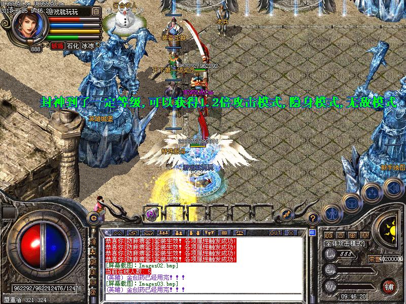 封神到了一定等级,可以获得1.2倍攻击模式,隐身模式,无敌模式