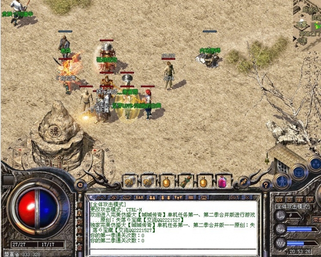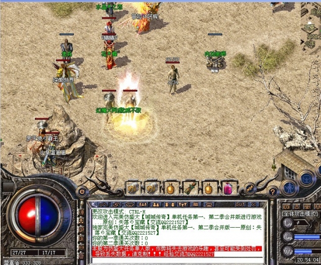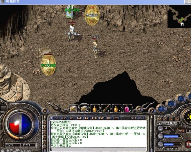 此端取自与城城任务单机传奇1.27!不过M2用的是非连击的假人版!本人觉得一个人玩挺孤单的!所以花了不少时间添加了大量假人!几乎所有地图都有假人!大家做任务的同时!可以PK什么的!嘿嘿!!注意了!有一种类型的假人装备很好!会主动杀人哦!大家玩的时候要小心哦!!喜欢的顶我啊!!不废话了!直接上图!!本人制作的四职业传奇!以后把大地图和怪物添加好了!但是还没添加物品- -!制作中.......