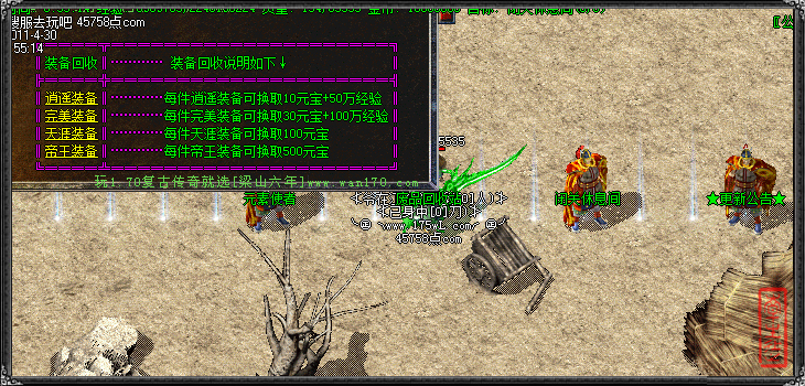 【以上多余的装备可以利用起来到土一键回收处回收并可得到元宝!无浪费资源! 】 【本F所以装备都可以暴出!特别提示大BOSS【人型怪】【雄霸】可以爆出终极装备!】 【装备排列:帝王、霸主、至尊、麒麟、黄金、七彩、终极佛装】