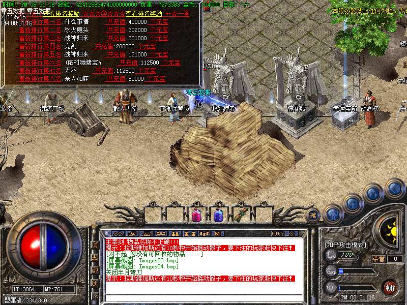 Ⅲ: 系统每天下午18点准时开放行会争霸,胜利者可获得3888元宝奖励