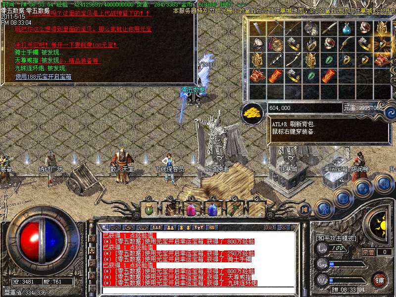 ⑦:幸运宝箱:此宝箱可用少量元宝开出高额经验!(可在散人天堂三层打元宝开箱子获取高额经验)