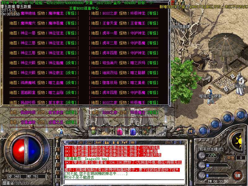 ⑥:散人天堂:免费地图此地图此地图分为4层.(怪物经验提高10倍,而且有BOSS爆元宝和JP装备)