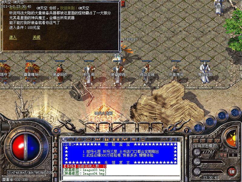本服增加送财活动,土药店.土书店.祖玛六层.祖玛七层.袄玛三层都会定期刷经验宝宝和元宝使者,刷出后有公告提示,请大家注意查看!