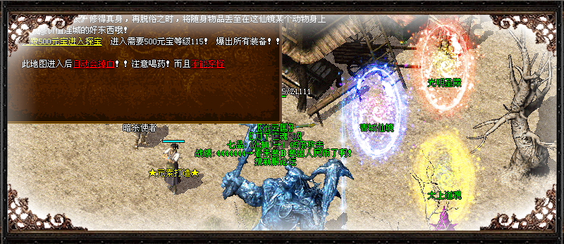 【更新】财富劫阵,BOSS爆出财富神石可以启动财富阵,启动的同时可以随机获得元宝!!满188层土药将会出现大量的元宝!!具体请查看土城财富劫阵NPC!!
