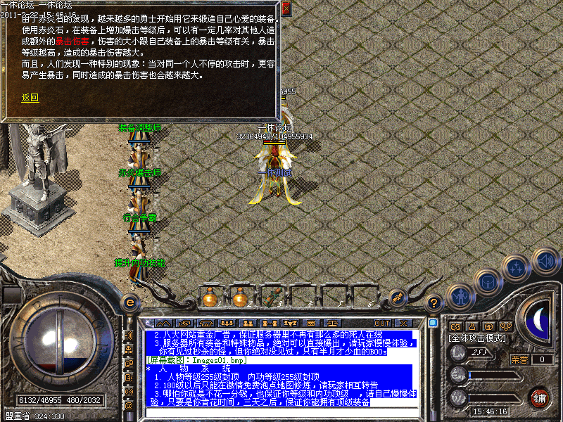 3.哪怕你就是不花一分钱,也保证你等级和内功顶级 ,请自己慢慢体验,只要是你肯花时间,三天之后,保证你能拥有顶级装备