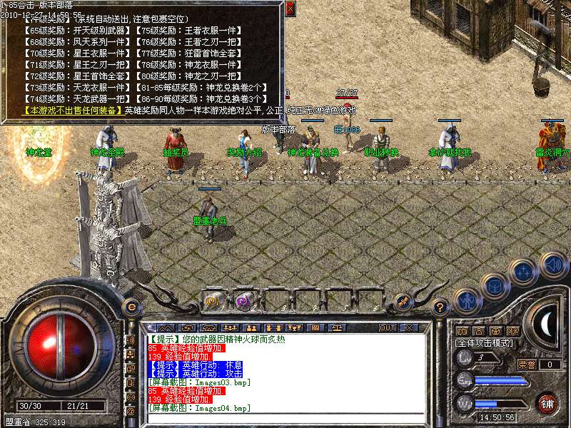 冲级奖励人物跟英雄【76级奖励:王者之刃一把】【77级奖励:狂雷首饰全套】【78级奖励:神龙衣服一件】【80级奖励:神龙之刃一把】【81-85每级奖励:神龙兑换卷2个】【86-90每级奖励:神龙兑换卷3个】。