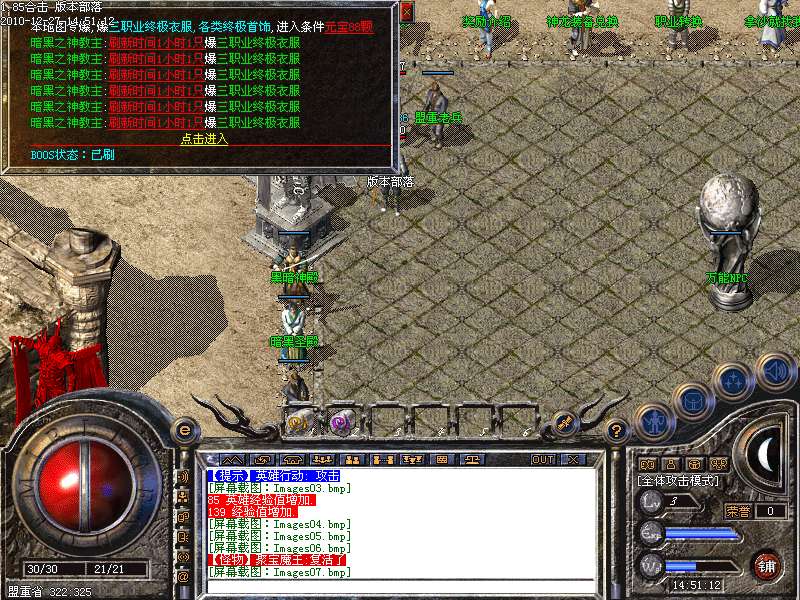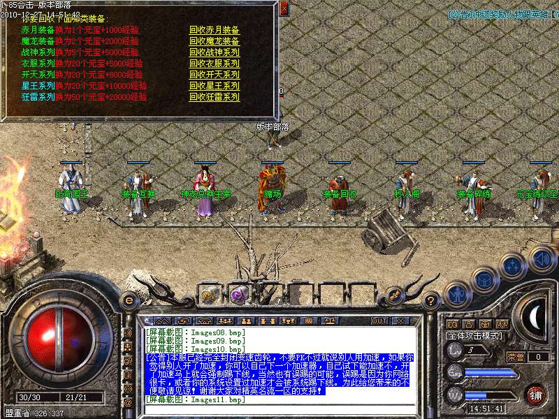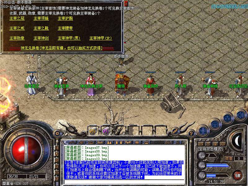 战神系列装备:秒人阁,休息间,风云宝阁各地图终级BOSS,开箱子,都能爆出或开出。祖马六每二小刷一只元宝大帝,必爆一百元宝。
