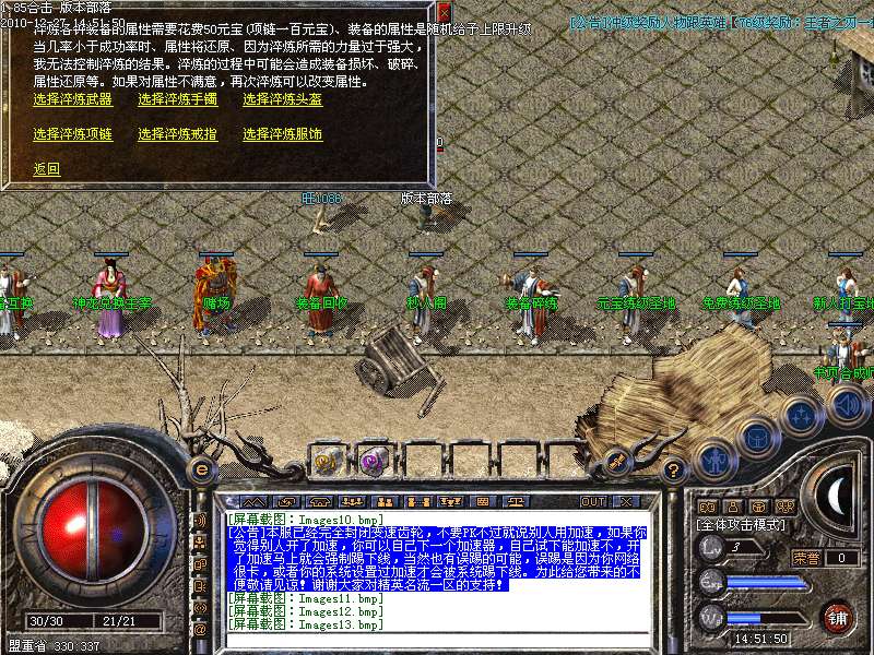 本服在1.85私服界元宝比列最高1:300点卡送:50网银1:80本服无GM纯绿色。