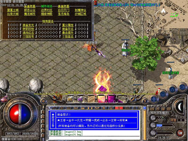 荣耀岛,虎威禁地,必杀神殿,主宰圣地,秦皇陵墓,寻宝天堂,通天帝国等等