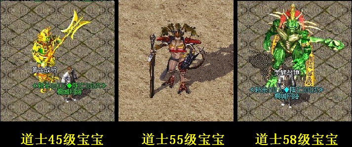道士宝宝:为三职业平衡,修改道士的可玩性-45级招黄金将领-50级招两只双头猿魔---55级招“蛇妖战神”,--- 58级招“龙族战神”---.60级招“巨灵神”---.62召“远古血色龙神”---.65召“东海龙王”---.70召“天界剑神”---.80召“雷神.雷镇子”--- 真神下凡.傲视苍生---.100召“上古冥王”--- 冥王在手.天下有我