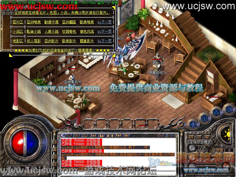 妓院系统:找MM,4大头牌美女任你选,有+经验倍数的,有+攻击倍数的,有+人物属性的,有+血上限的。