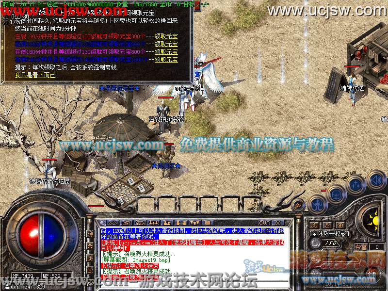 送宝系统:玩家每一个小时,二个小时,三个小时,四个小时,均可在土安全区边免费送元宝处领取在线奖励。
