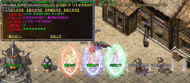 2:在行会服务处进入练级区域打怪。