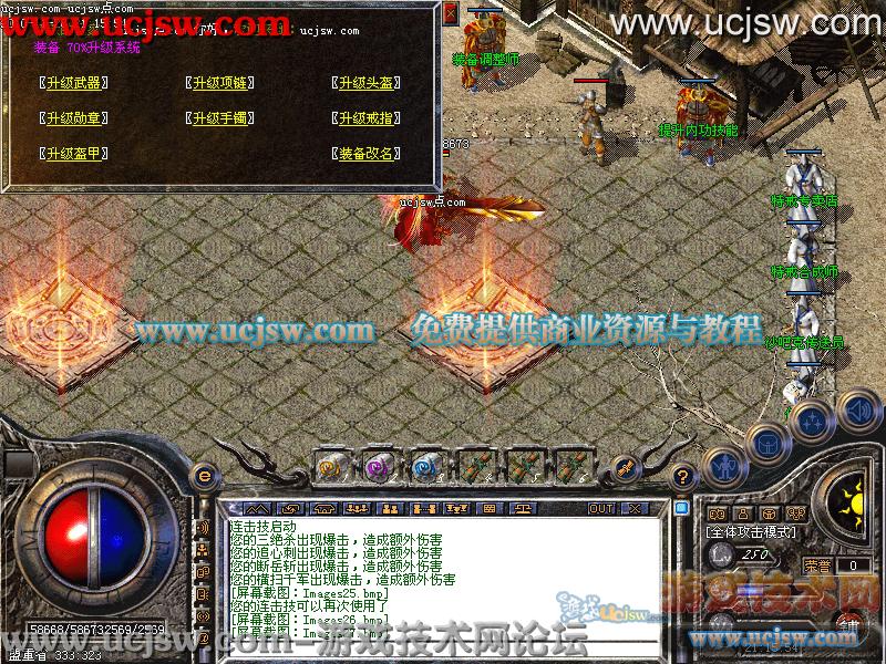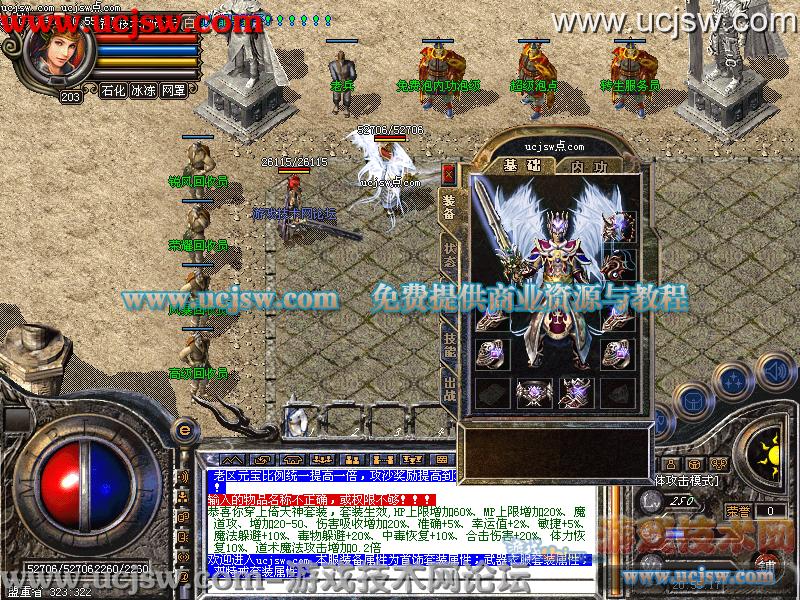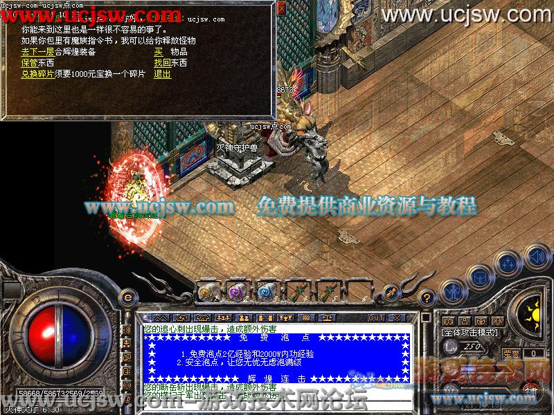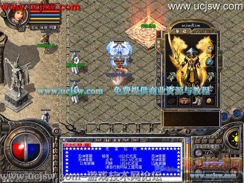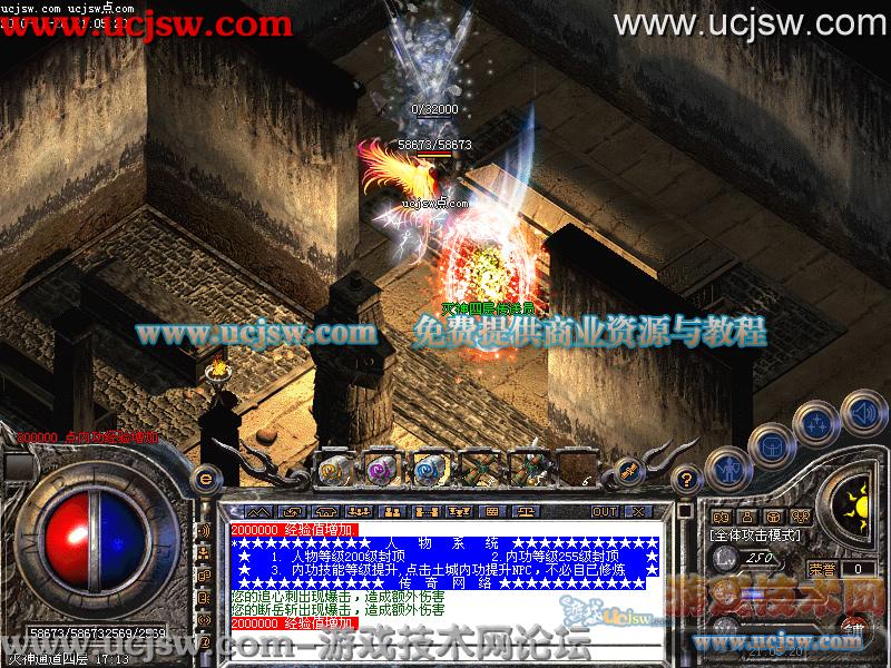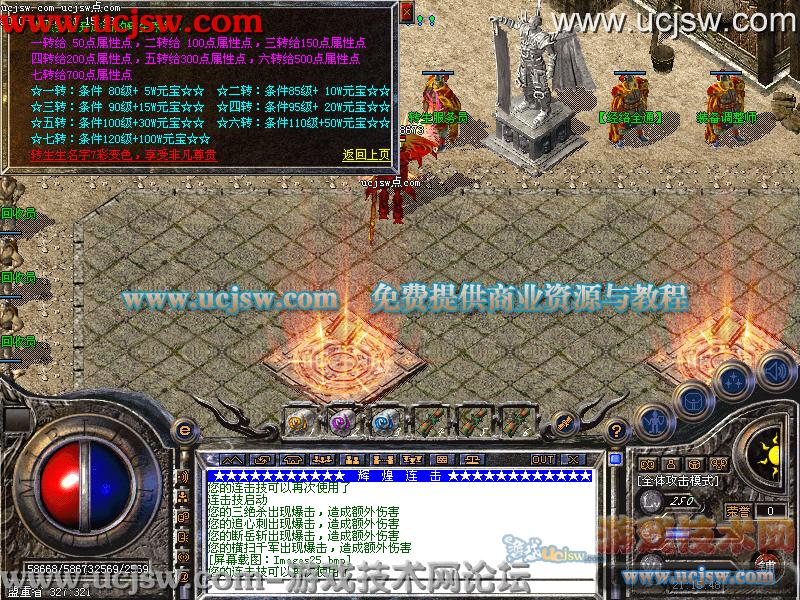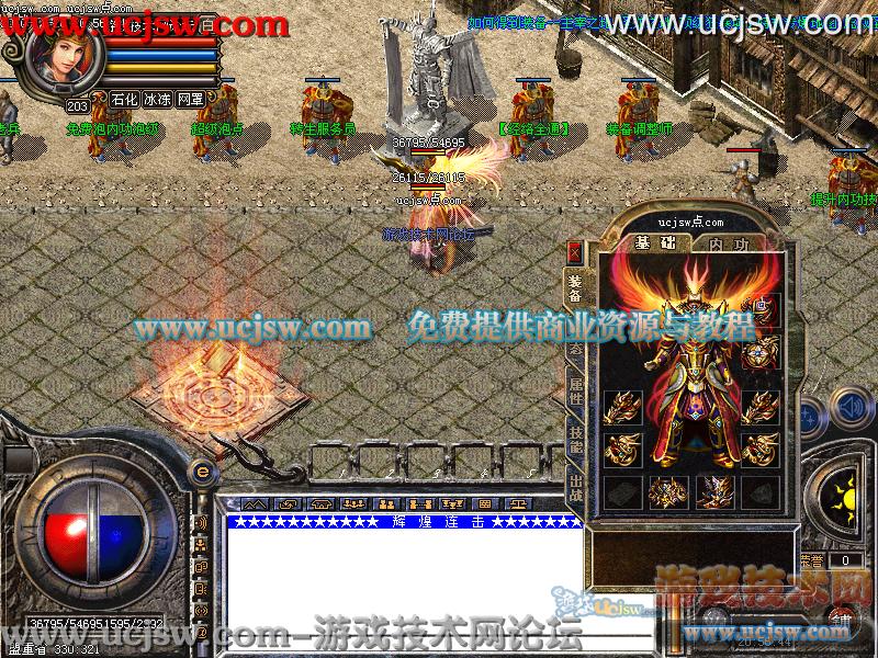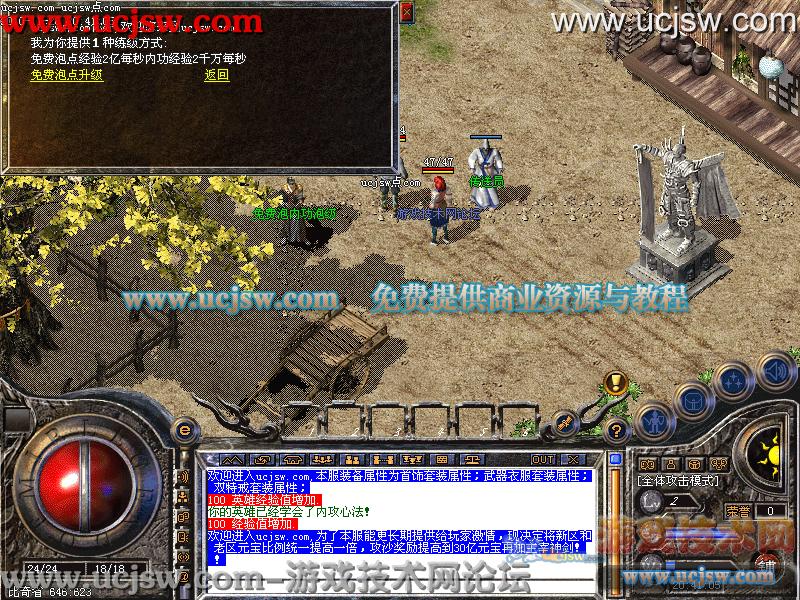 2.内功等级255级封顶3. 内功技能等级提升,点击土城内功提升NPC,不必自已修炼1. 终极套装【传奇套装】属性高,PK必备!!