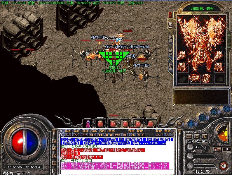 各种宝石指定出处:蚂蚁洞以及卧龙庄园。暴率比较可观。宝石的用处以及用法请咨询土NPC 陈天桥。
