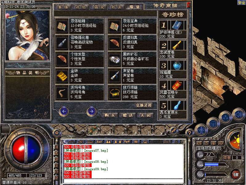 【冲级奖励】(系统自动送出,注意包裹空位)[48级奖励:20元宝] [50级奖励:屠龙系列装备][52级奖励:战神项链系列][54级奖励:200元宝][56级奖励:开天级别武器][60级奖励:星王之刃][62级送星王圣甲][66级奖励:极品星王之戒][67级奖励:极品星王之镯][68级奖励:极品星王盔][69级奖励:极品星王项链][70级奖励:极品星王项衣][71级奖励:极品星王项刃][80级奖励:终极复活一枚]。