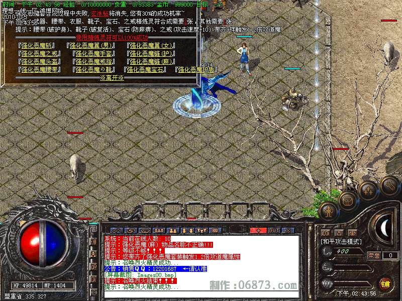 更新,原创特殊装备合成方式,让你打到的每件装备,都有用处!装备合成目前开通到180级套装!