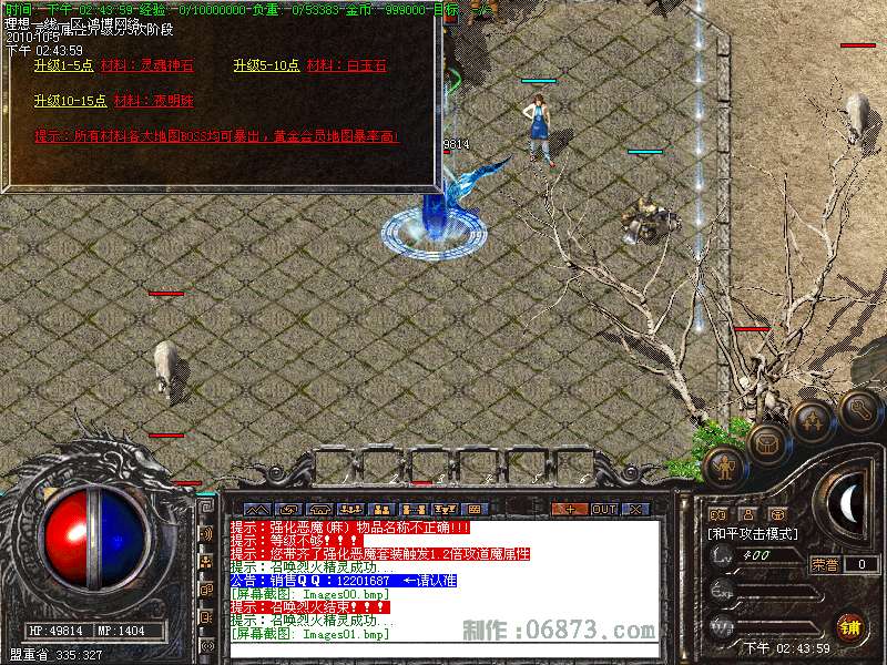 更新,牛牛装备升级系统。服务器所有的装备,都可以升级相关属性,不只是升级攻击那么简单。升级装备所有的属性,请找土城安全区附近的:装备升级师!(伟哥原创脚本)