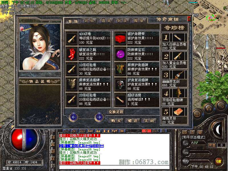 更新,玩家只要升级,就有相应的游戏装备可以领取穿戴,升级到400,奖励元宝!(独家原创终身升级奖励)