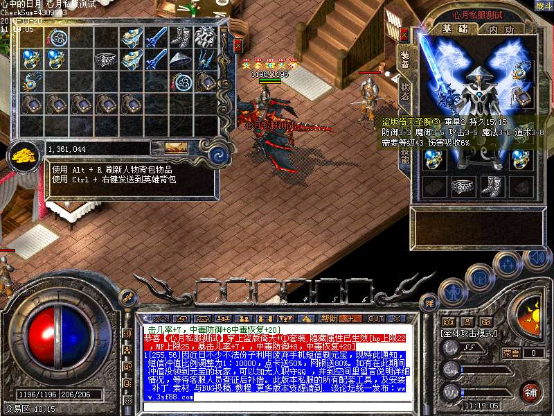 17.特色装备合成~ 盗版倚天分十阶,找到指定NPC合成,四阶即可获得等同极品倚天一样的10*10全屏倚天辟地技能。