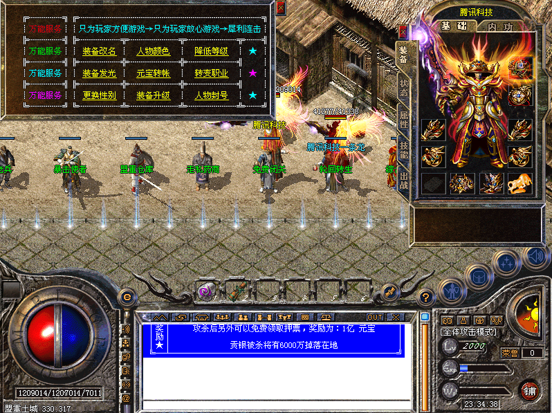 【特色功能】:沙城奖励·晚上10点·沙巴克皇宫内·奖励③亿元宝。