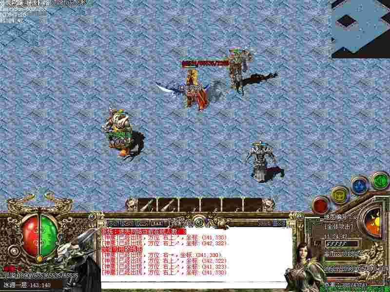 在黄金道场第九层打稻草人进入到黄金休息室,在那里大家可以补充药品,聚集玩家,然后在[13,9]下到黄金道场护法堂,杀死里的护法,在从[29,15]下到最后一层黄金道场宫殿。
