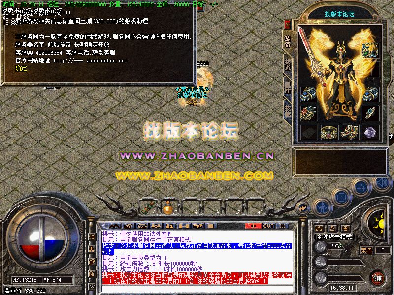 本服务器增加了夫妻传送,师徒传送,在线泡点。更大的方便了大家,徒弟出师,师傅可以获得20点声望。小号泡点获得的能量可以通过 行会管理员 兑换成声望,再通过雇佣兵兑换成声望卷交易给大号,更大的方便了许多玩家的练级之苦。