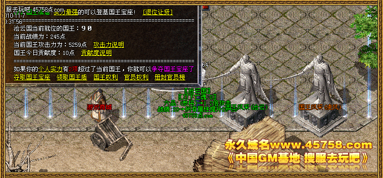 战绩最高的玩家可成为该国国王,国王有着至高无上的权利!国王超过8小时不在线将重新选拔!