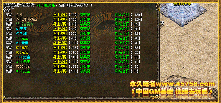 【沙城奖励】本服新区开区第3天则集体攻城,行会老大无需递交头像,新区沙城主奖励100000元宝,老区沙城主奖励50000元宝。