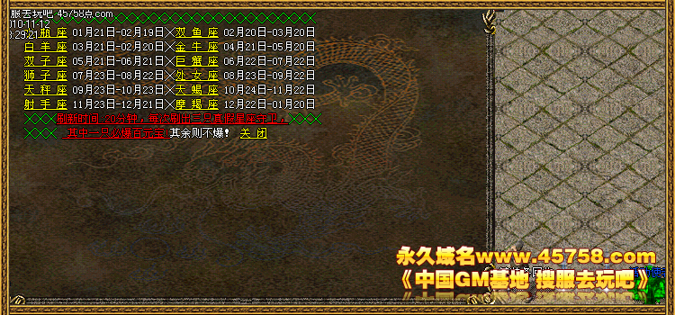 【更新】增加12星座,每20分钟每个星座刷3只守卫,其中一只为真,杀死必爆100元宝!!