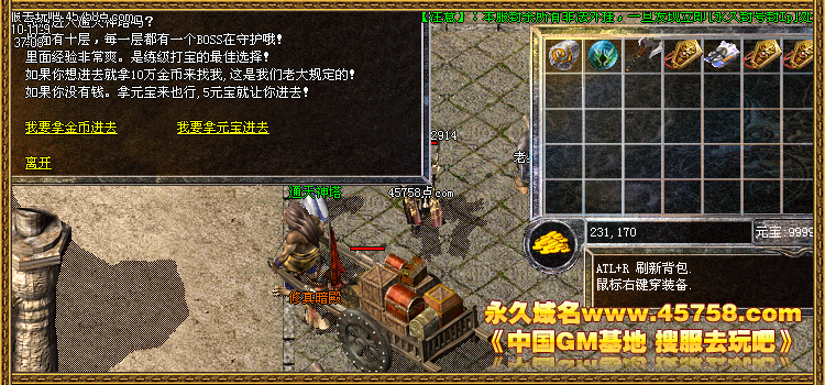 ⒌本服元宝可以用来进入收费地图,地狱,古墓,神塔等地图装备爆率均比较高。