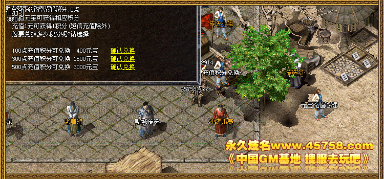 三、游戏中商城位于经验条边上的[铺]字,内可购买:三倍经验勋章、金条、传送符、祝福油……等物品以辅助玩家发展游戏;