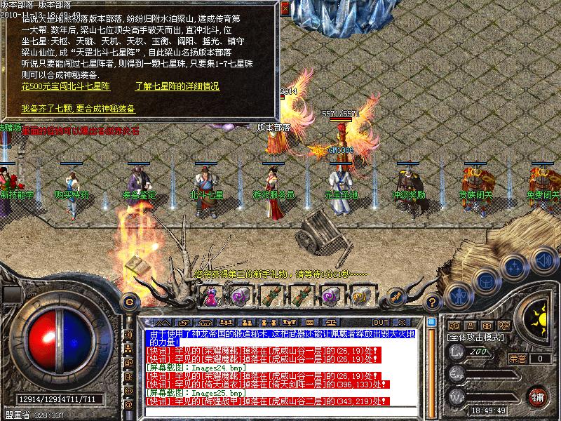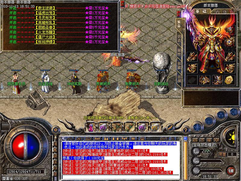火龙可爆出:荣耀,虎威,必杀,主宰,传奇等装备和元宝