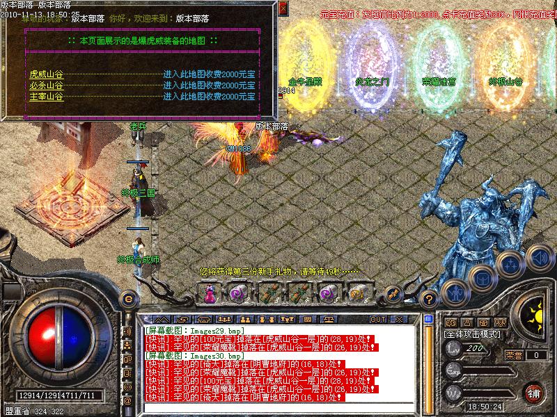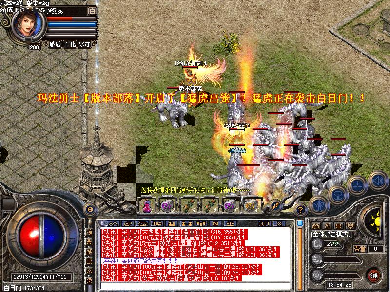 猛虎可爆出:荣耀,虎威,必杀,主宰,传奇等装备和元宝