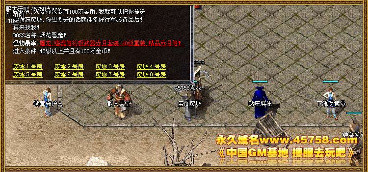 传送员处-装备区域地图,爆所有装备,进入费用极低,全民开放。