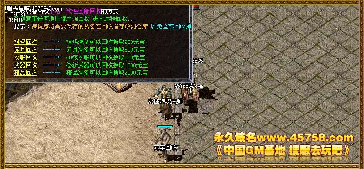 然后进入玛雅、猪九等地打祖玛装备回收获取元宝和经验。