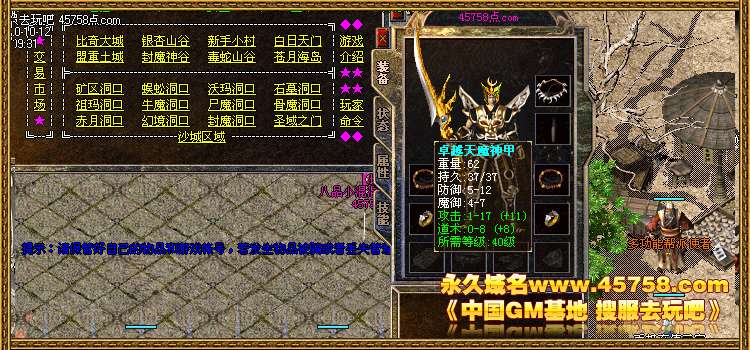 传送员处-装备区域地图,爆所有装备,进入费用极低,全民开放。