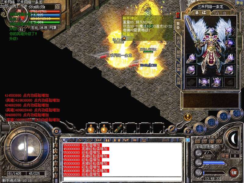 〖版本介绍一〗:人物等级300级封顶,内功等级255级封顶,内功技能等级提升,点击土城内功提升 NPC,不必自已修炼,180级以后只能在激情免费泡点地图修炼!
