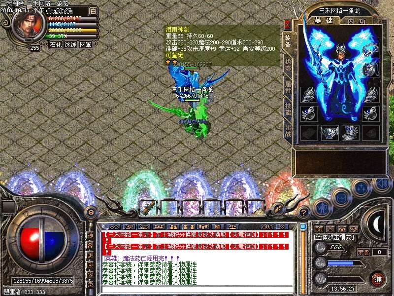〖版本介绍五〗:增加风云天下套装,系补丁套装!装备全面提升属性!具有复活麻痹作用!武器衣服