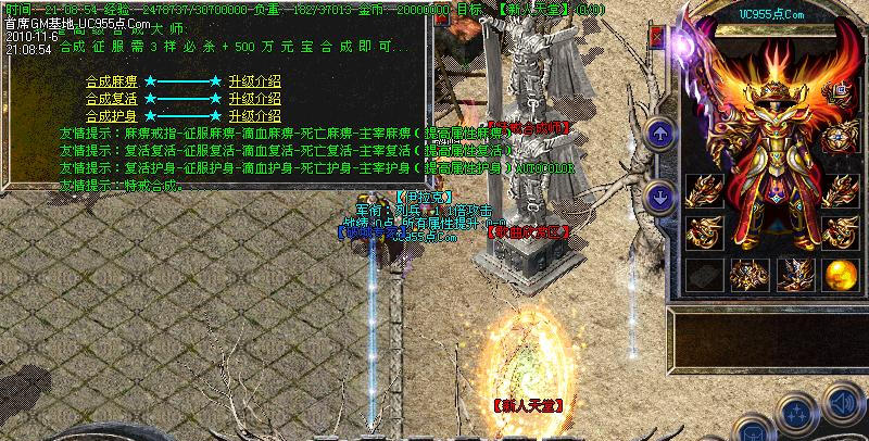 当一位新人来到游戏时候,系统送的有新手的天地装备,方便大家发展,