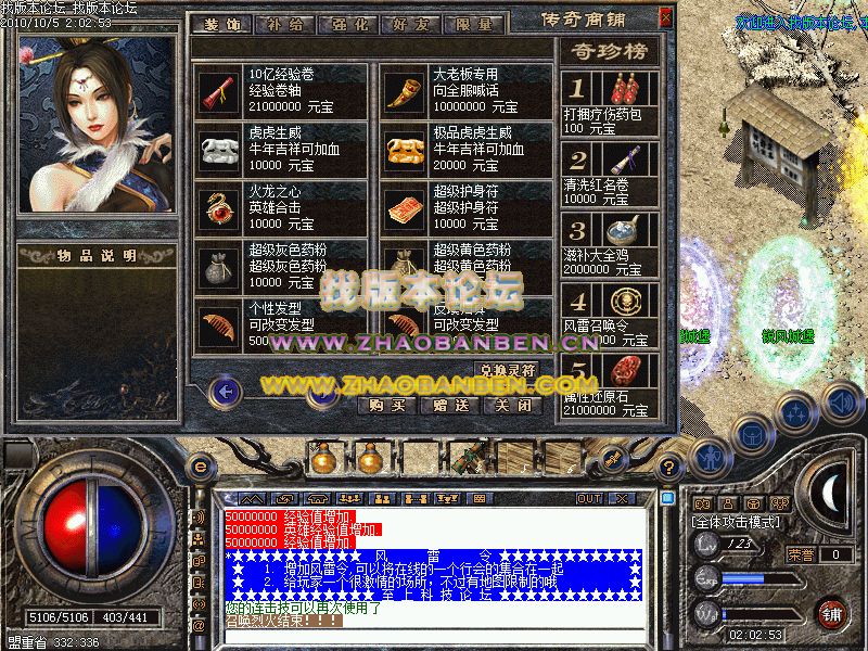 *★★★★★★★★★★ 人 物 系 统 ★★★★★★★★★★★★ 1. 人物等级无封顶 2.内功等级255级封顶 ★★ 3. 内功技能等级提升,点击土城内功提升NPC,不必自已修炼 ★★★★★★★★★★★★ 找 版 本 论 坛 ★★★★★★★★★★★