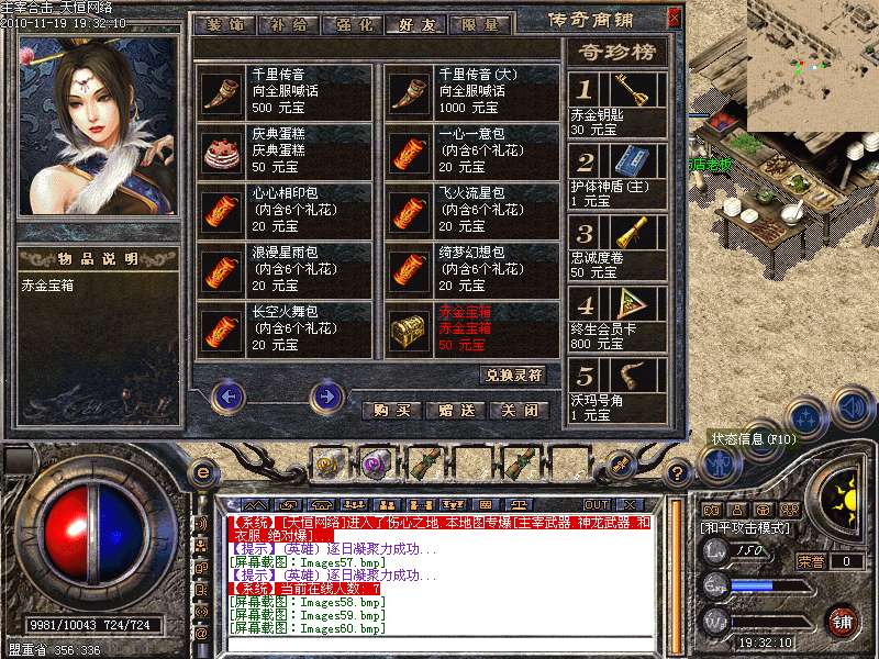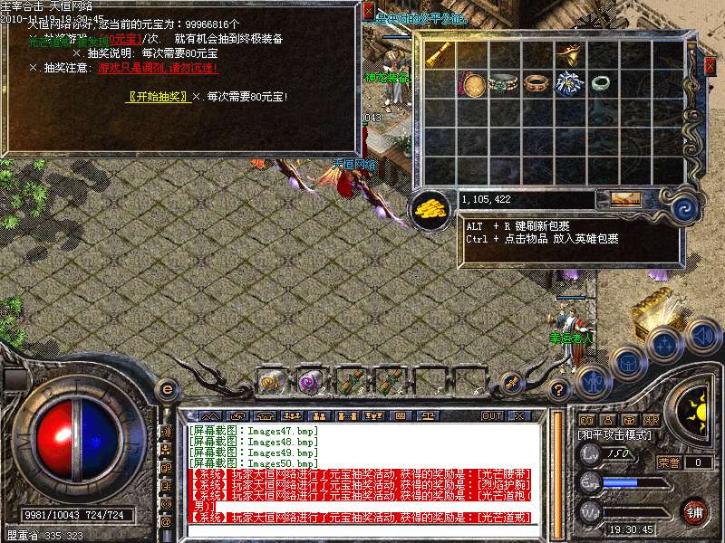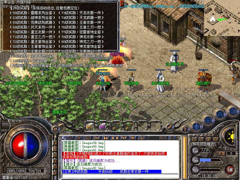冲级奖励......升到105级....奖励传奇衣服一件......